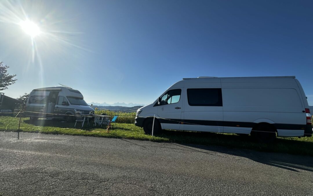 Aktuell stehen wir auf einem TCS Campingplatz bei Bern, der auch direkt an der Aare ist. Hier kann man wunderbar so lange man möchte am Fluss entlang gehen. Das freut Yuma natürlich besonders 😉