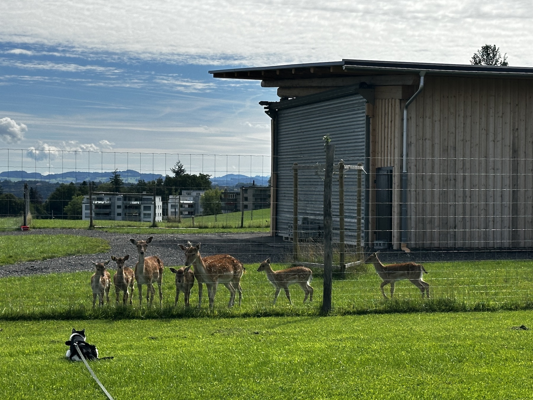 Die Pferdepension Liechti ist sehr schön und ruhig gelegen – und seit einem Jahr haben sie hier auch ein Gehege mit Damhirschen, die sehr neugierig sind und immer wieder an den Zaun kommen um zu schauen, was hier spannendes passiert.