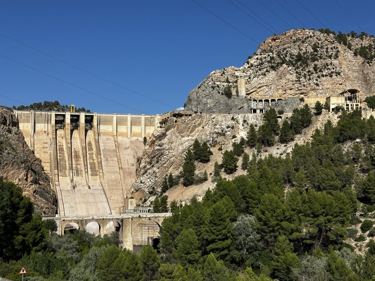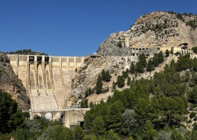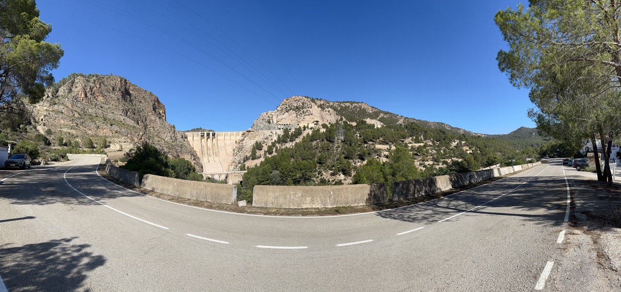 Die letzten 2km waren dann eine sehr kurvige Serpentinstraße runter ins Tal – wieder mit fantastischer Aussicht auf einen Staudamm und in die Berge gemauerte Säulen und Gebäude.