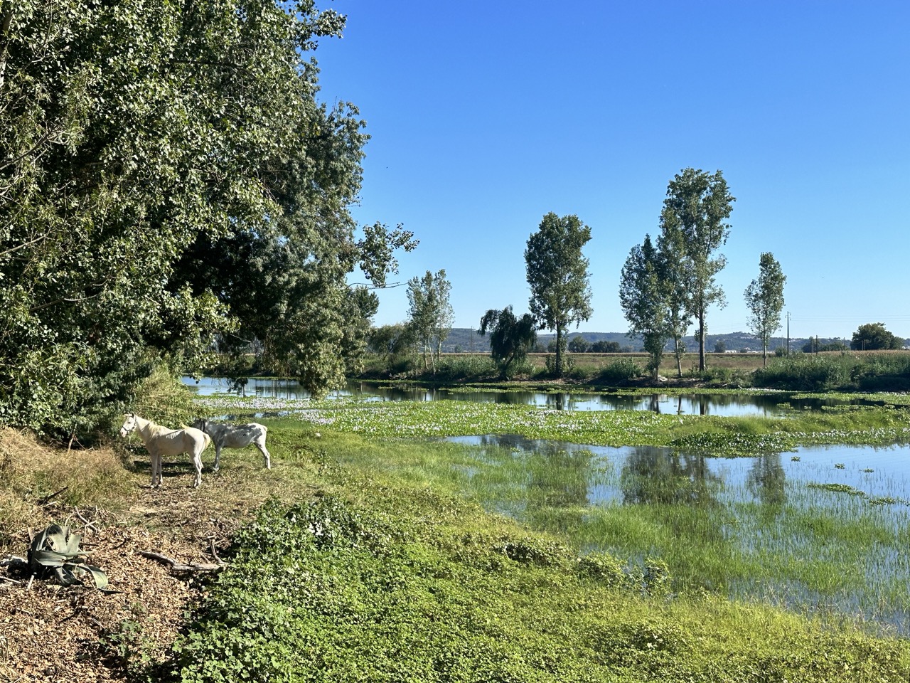 Direkt gegenüber von der Straße habe ich mich daher zunächst sehr gefreut einen kleinen See mit Seerosen zu entdecken. Und auch einige Pferde, die dort im Wasser standen. Erst auf den zweiten Blick hab ich erkannt, dass sie an einer sehr kurzen Leine gehalten wurden – ohne Futter oder der Möglichkeit den Schatten aufzusuchen 😰🫣