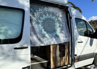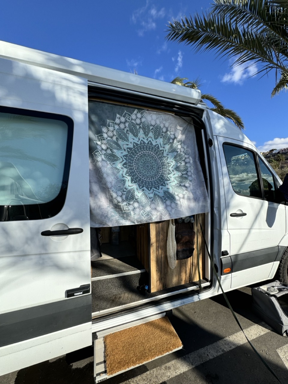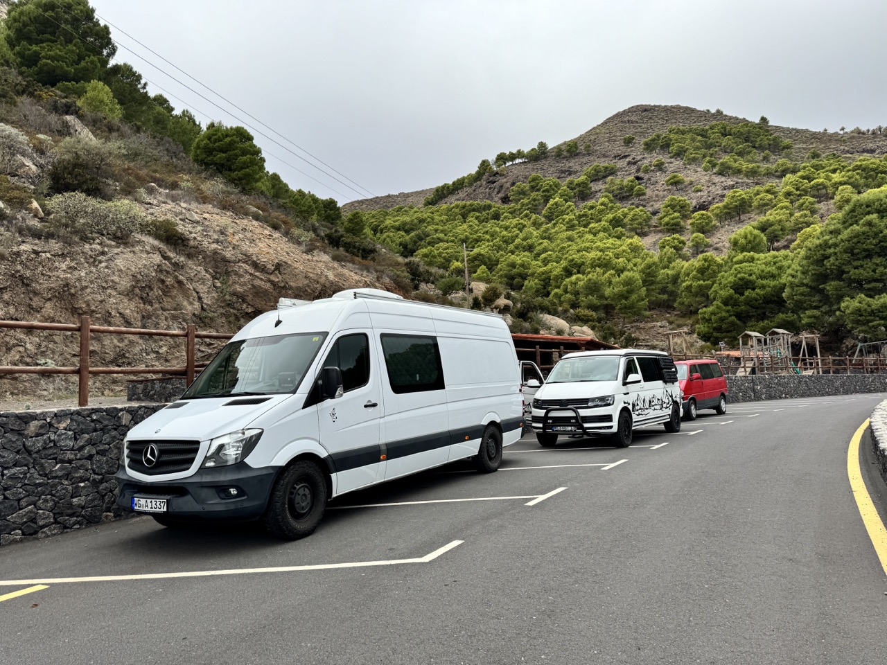 Derzeit stehen wir auf einem Parkplatz im Eck direkt am Meer, wo wir uns sehr häuslich eingerichtet haben. Durch Olaf und den Van von Micha haben wir uns hier etwas abgegrenzt und genießen die Ruhe in unserem „Garten“ 😆